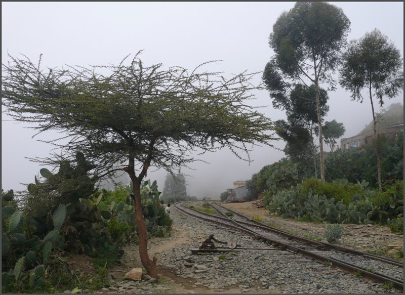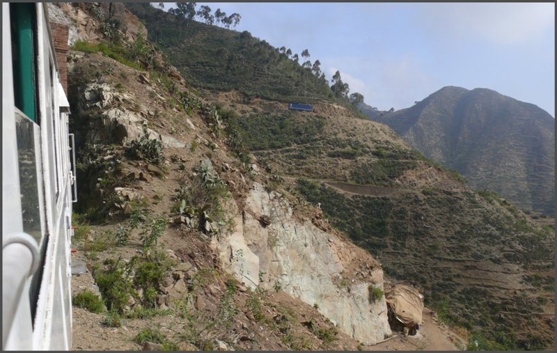 Die wichtigste Strasse des Landes, die P1 von der Hauptstadt Asmara 2350m ü/M. nach Massawa am Roten Meer bei Nefasit. (30.10.2008)