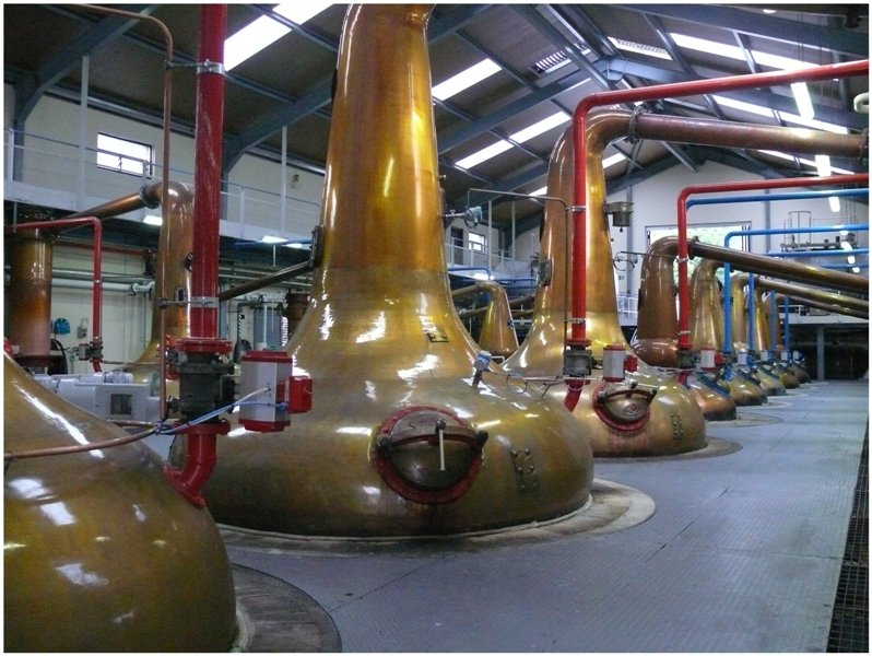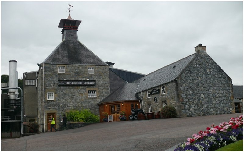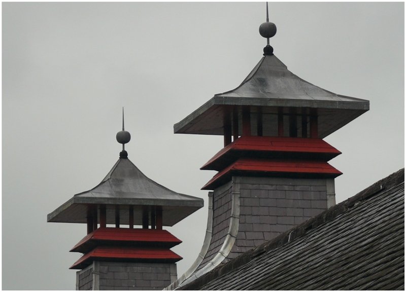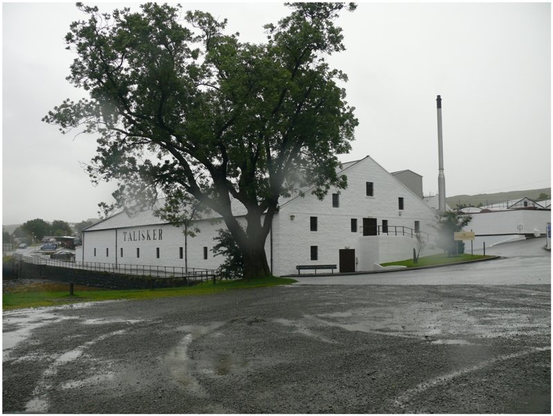 Aussicht vom Mc Craig Tower in Oban über den Firth of Lorn. Das Kamin der Oban Distillery teilt das Bild in zwei Hälften. (09.08.2008)